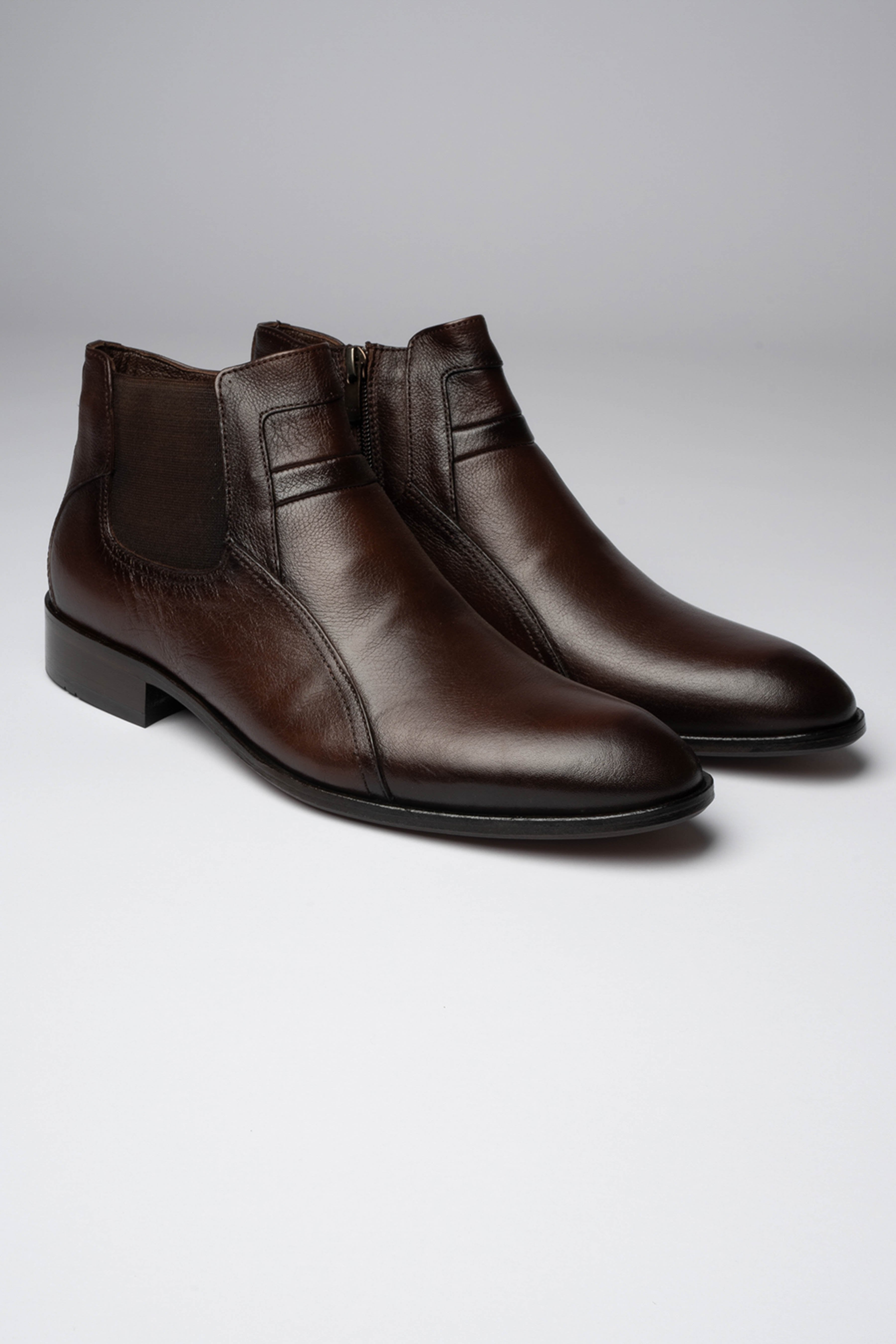 A refined blend of casual ease and dress-shoe sophistication — the Saylo Chestnut Boot is your go-to for everything from smart casual outings to elevated eveningwear. Crafted with a dual-construction design (gusset on one side, zip on the other), it offers effortless entry and exceptional comfort. The almond-shaped toe is shaded for added depth and longevity, giving the boot a premium finish that pairs perfectly with denim, chinos, or tailored trousers.