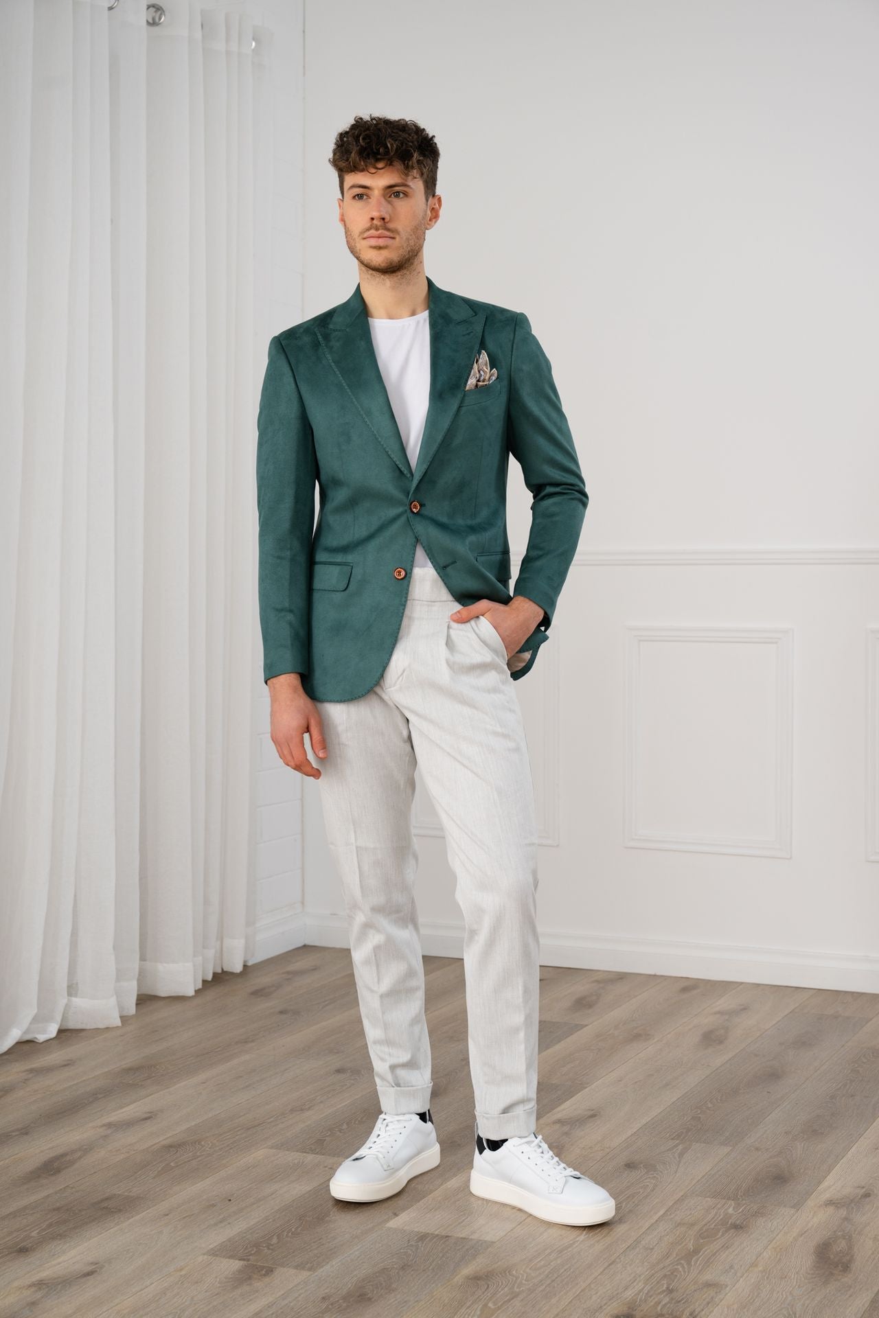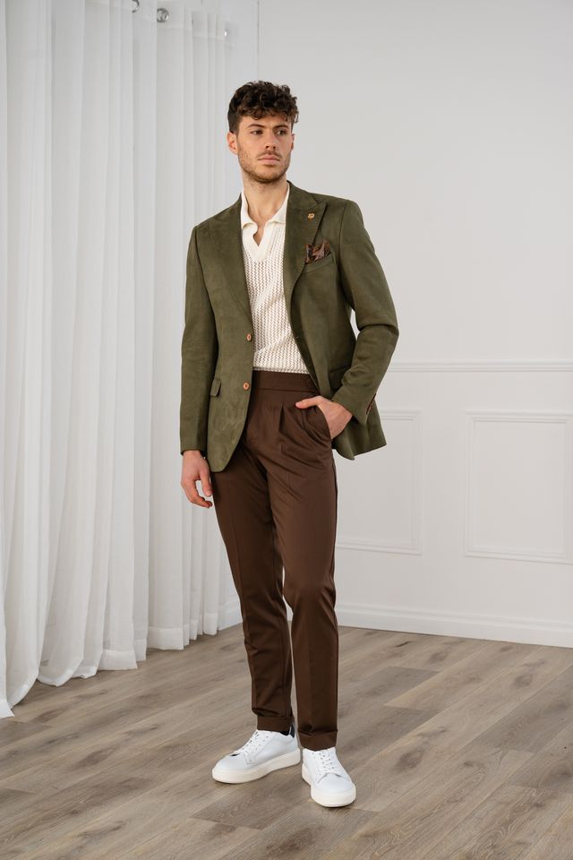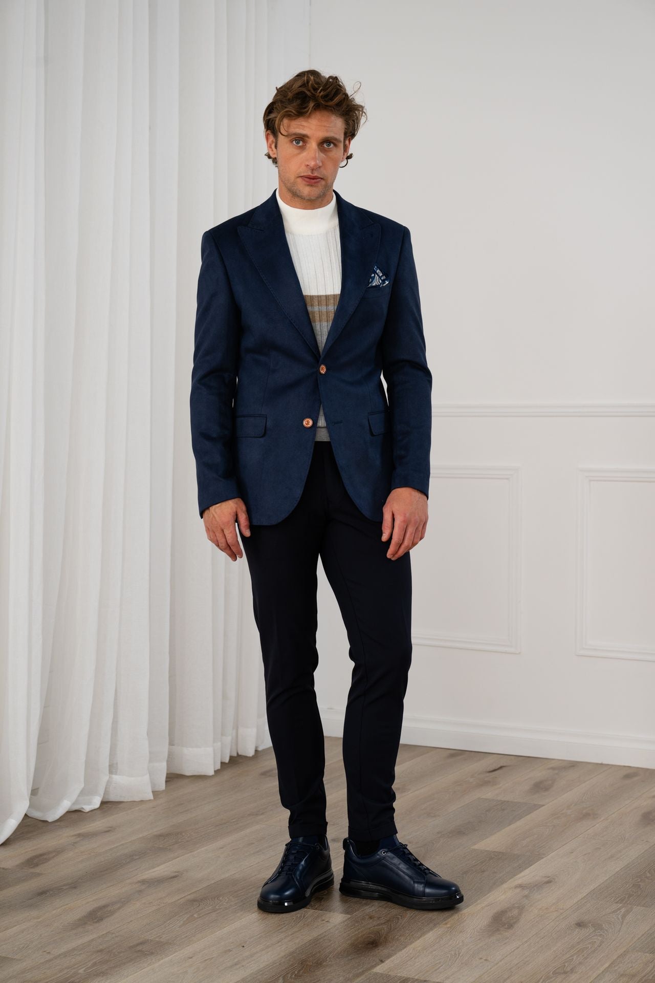 Soft to the touch, sharp to the eye — the Drake redefines effortless luxury. Crafted from innovative micro-suede, this single-breasted blazer delivers the plush texture of real suede without the maintenance. Featuring a beautifully shaped peak lapel, pick-stitch detailing, contrast buttons, and wing-lined construction for structure and comfort, this piece is designed to move seamlessly from casual sophistication to evening refinement. A modern staple for the man who appreciates texture and tailoring in equal measure.