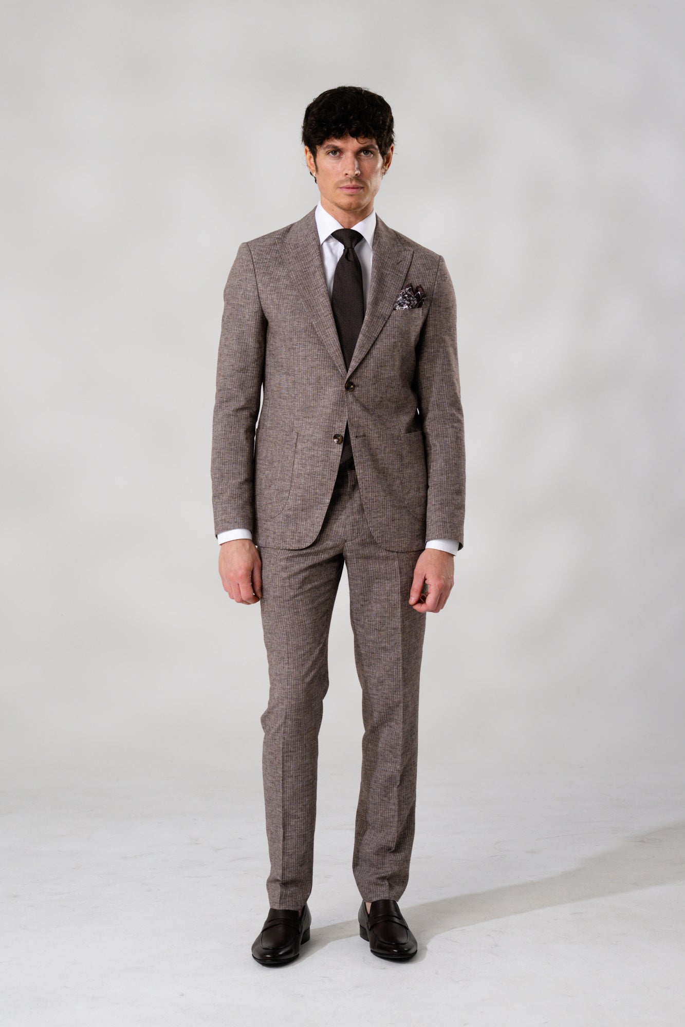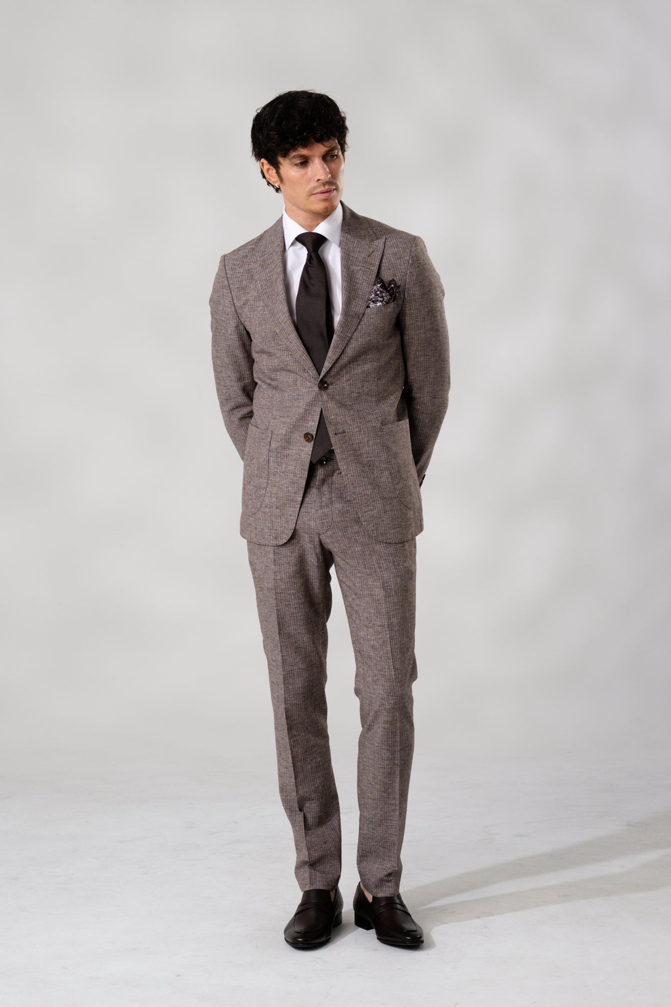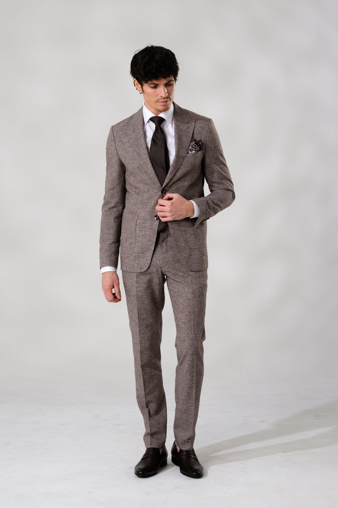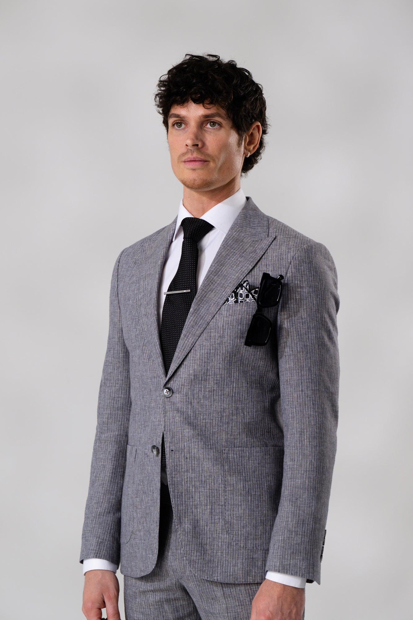 A masterclass in relaxed refinement. The Fallon Suit blends linen’s breathability with Dyonsu’s signature tailoring for a look that’s as effortless as it is polished. Crafted from a fine chalk pinstripe fabric, this two-piece features a peak lapel, patch pockets, and pick-stitch detailing that nods to traditional craftsmanship. Contrast tortoiseshell buttons and a lightweight, wing-lined structure give it a casual-luxe edge — ideal for summer weddings, outdoor events, or smart resort dressing. Designed to keep you cool while looking composed.