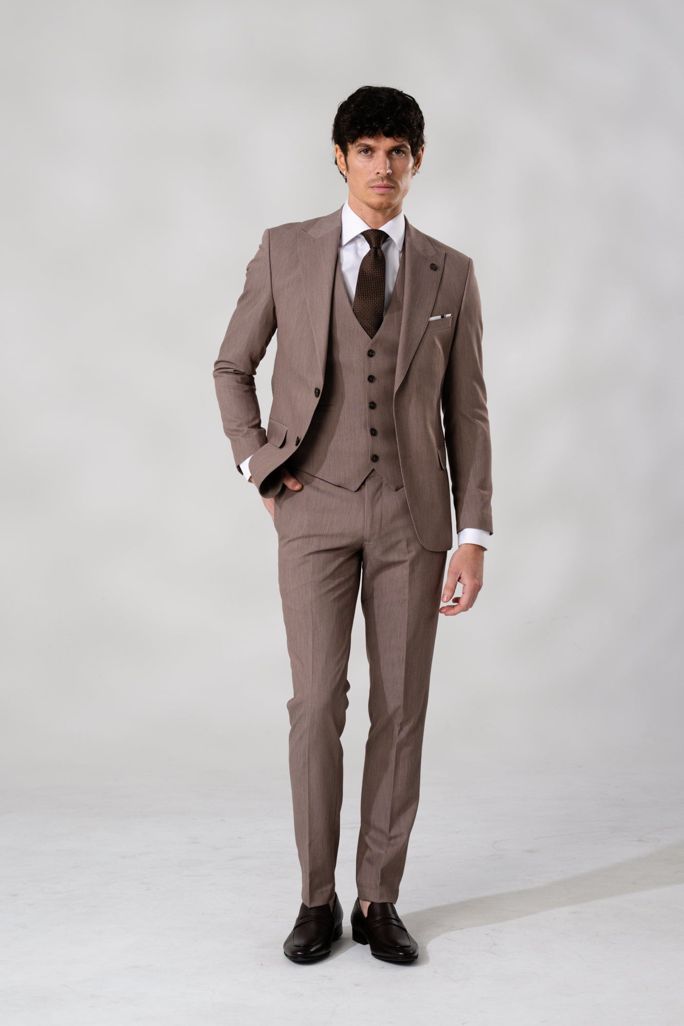 A modern evolution in movement and design. The Orlow Suit redefines comfort through innovative stretch fabrics and a soft, breathable lining that allows freedom without compromising on sophistication. Tailored in a self-stripe fabric with a subtle sheen, this 3-piece combines classic craftsmanship with modern functionality. Featuring a wide peak lapel, flap pockets, and meticulous pick-stitch detailing, it’s the perfect blend of form and flexibility — designed for those who demand style that keeps up with their pace.