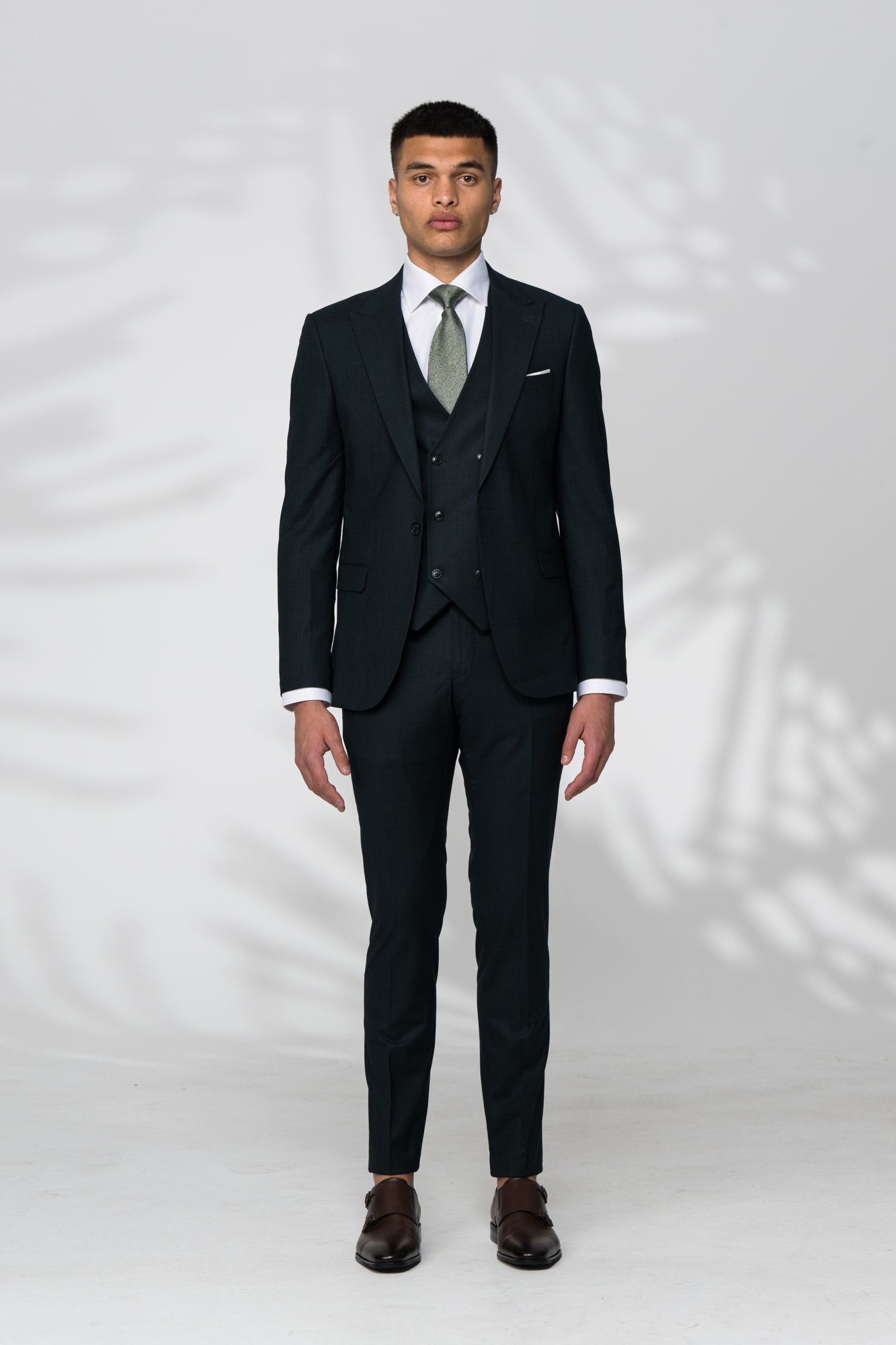 A masterclass in timeless tailoring, the Oslo 3-Piece Suit delivers refined elegance with a modern edge. Crafted with a subtle twill weave that adds quiet depth and sophistication, it features a sharp peak lapel, flap pockets, and a beautifully balanced double-breasted vest. Clean lines, structured form, and a classic silhouette make this an essential choice for weddings, formal events, or any moment where you want presence without shouting.