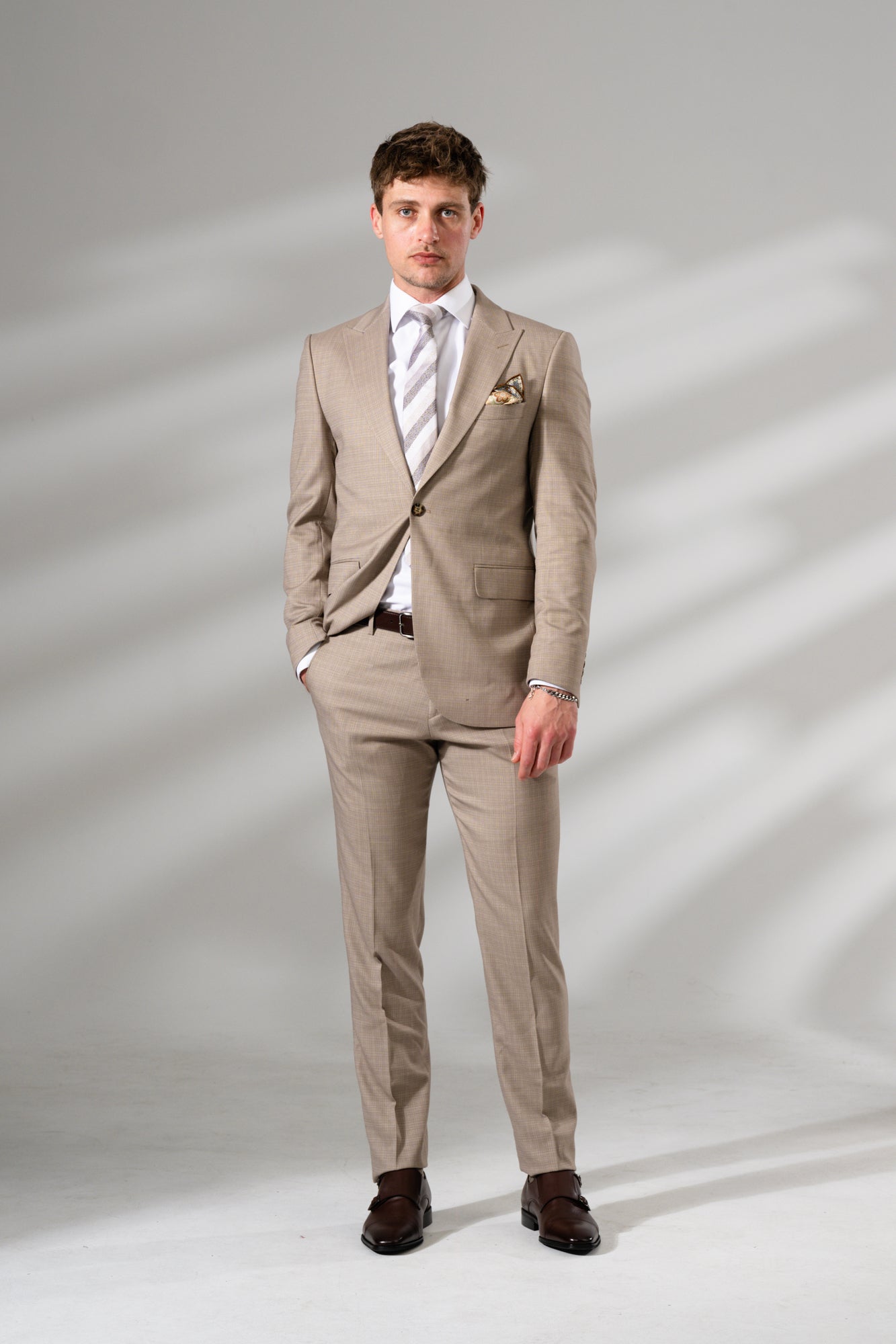 A Dyonsu signature — redefined season after season. The Sergio 3-Piece Suit captures everything we love about sharkskin: depth, dimension, adaptability, and a fabric fleck that never stops performing. Its colour-blocked weave gives the suit presence without being loud, making it just as reliable for weddings as it is for smart casual days styled with denim as a sports jacket. Versatile, modern, and effortlessly refined — it’s the suit you reach for when you’re not sure what to wear, because it always looks right.