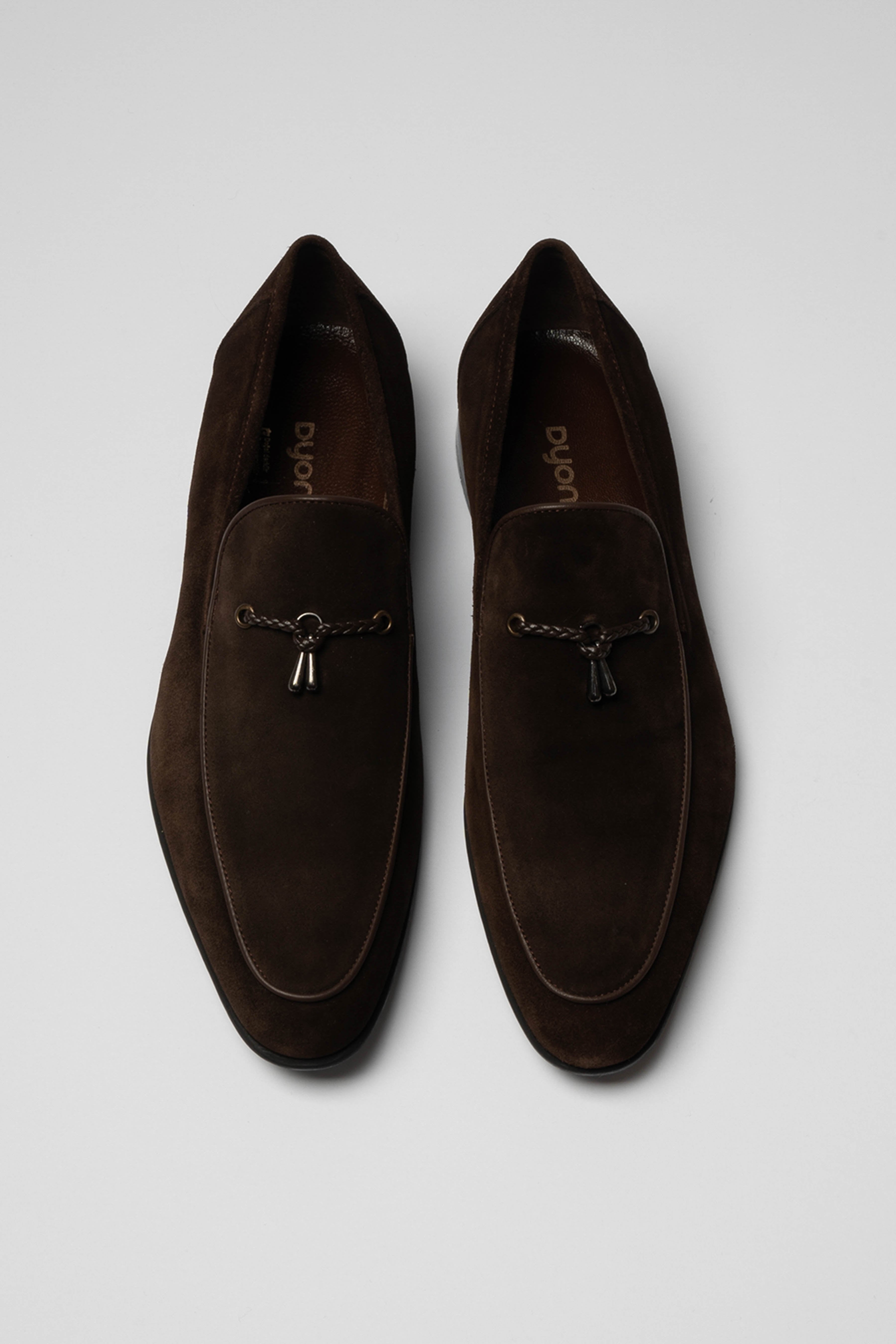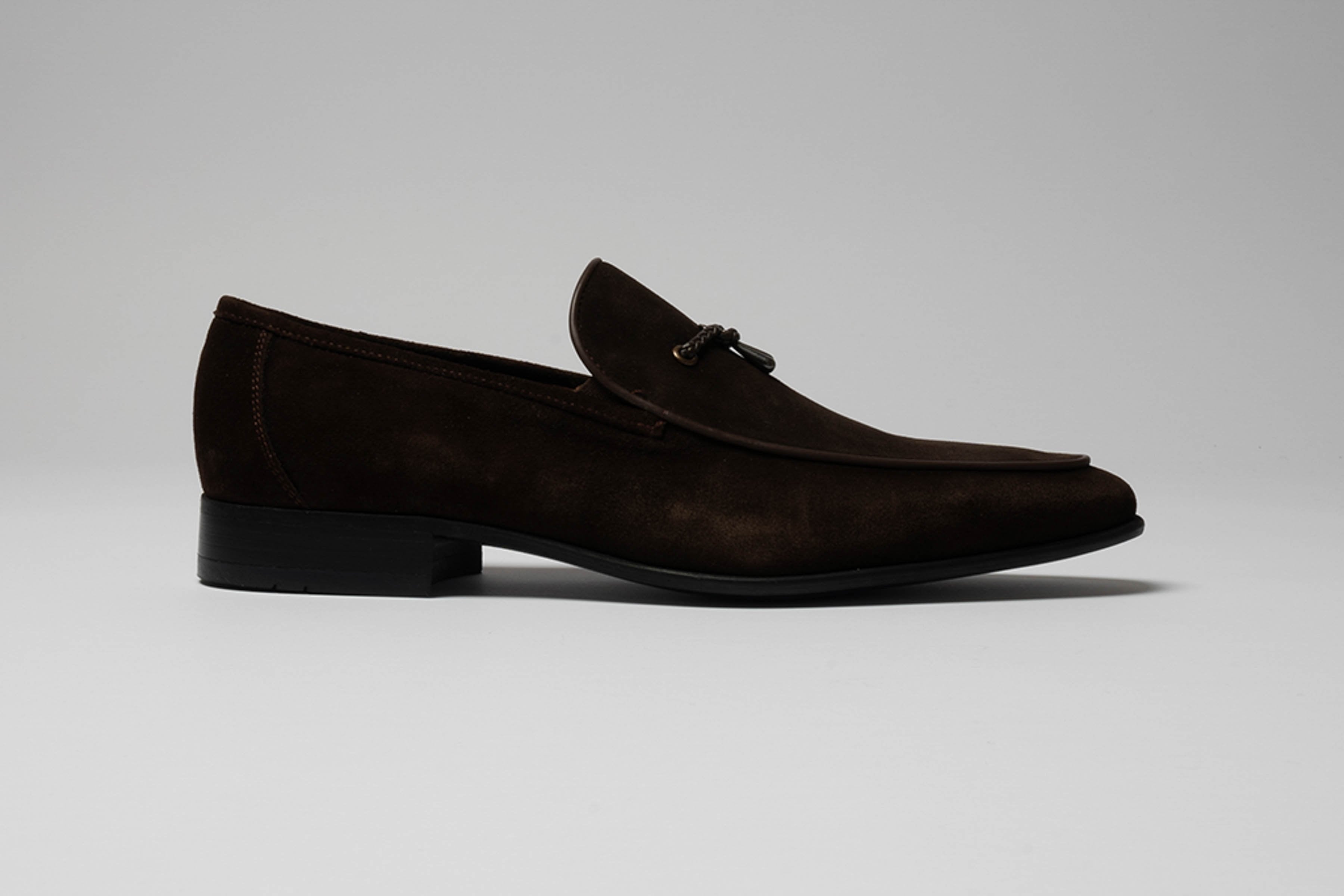 A soft nubuck leather loafer with an almond toe and metal tassel detail. Designed for comfort with a leather upper and inner, and finished with a durable rubber sole that holds up to everyday wear.