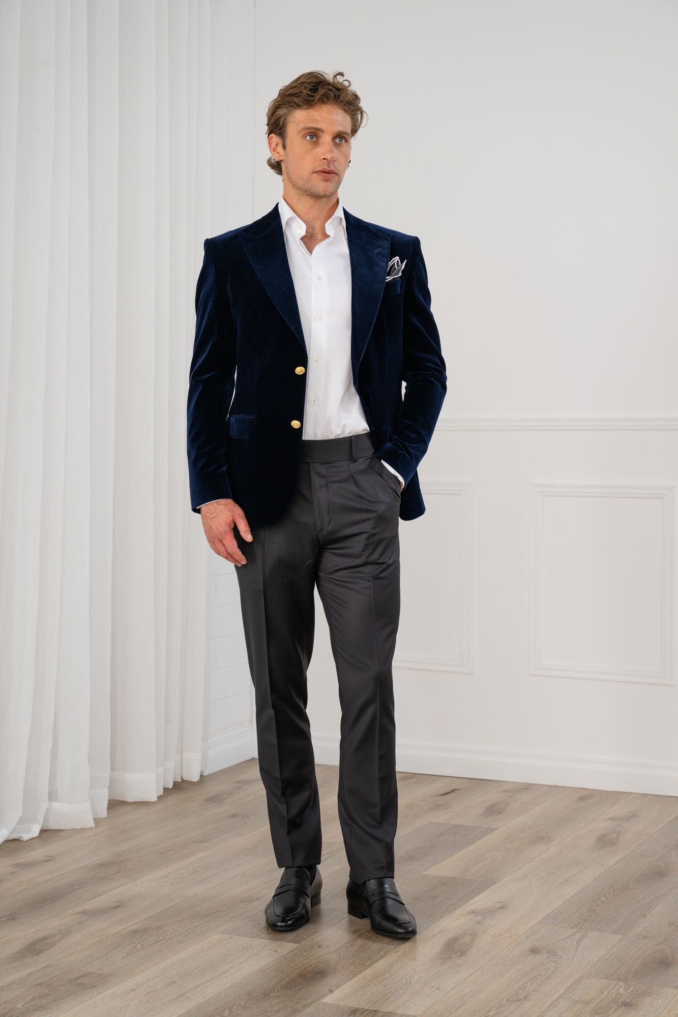 This jacket arrives ready to wear. Suit pants, unless stated otherwise, come with a raw hem for custom tailoring.